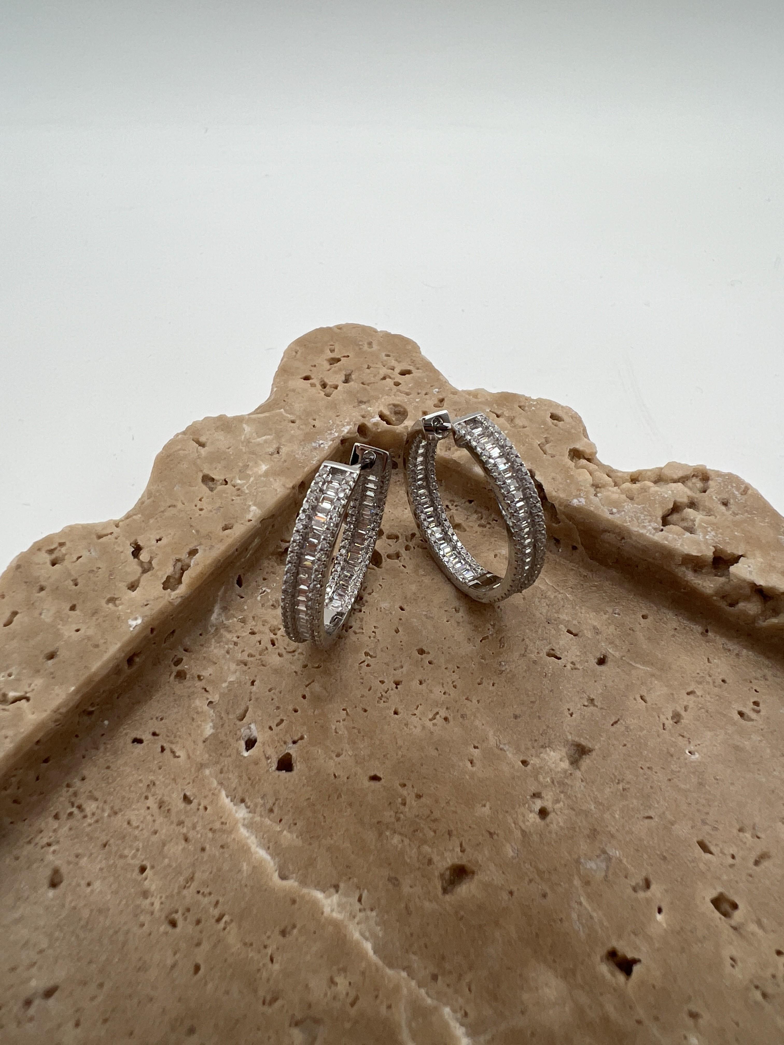 BAGET TAŞLI GÜMÜŞ HALKA KÜPE