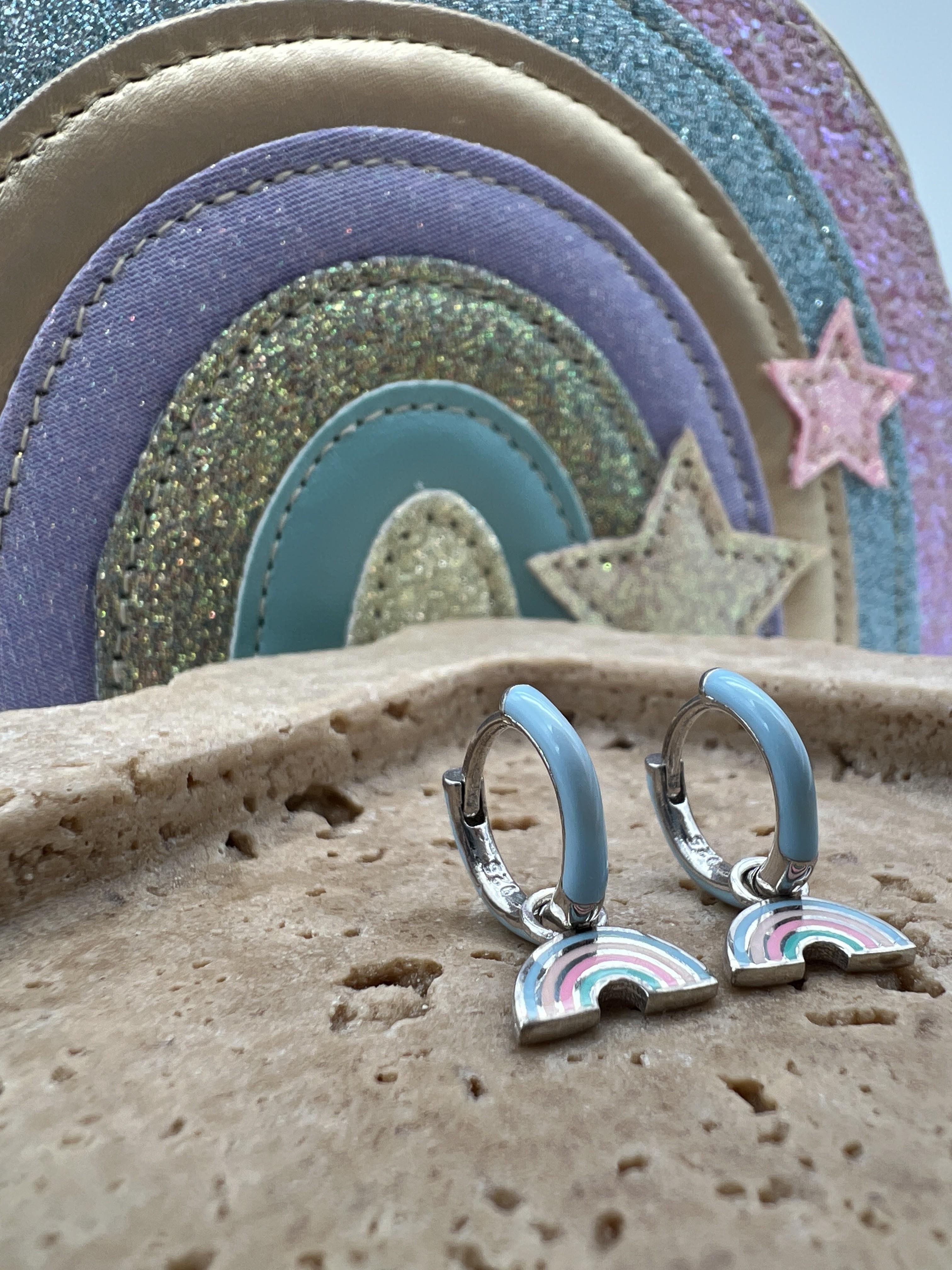 ÇOCUK GÜMÜŞ MAVİ MİNELİ SALLANTILI GÖKKUŞAĞI KÜPE