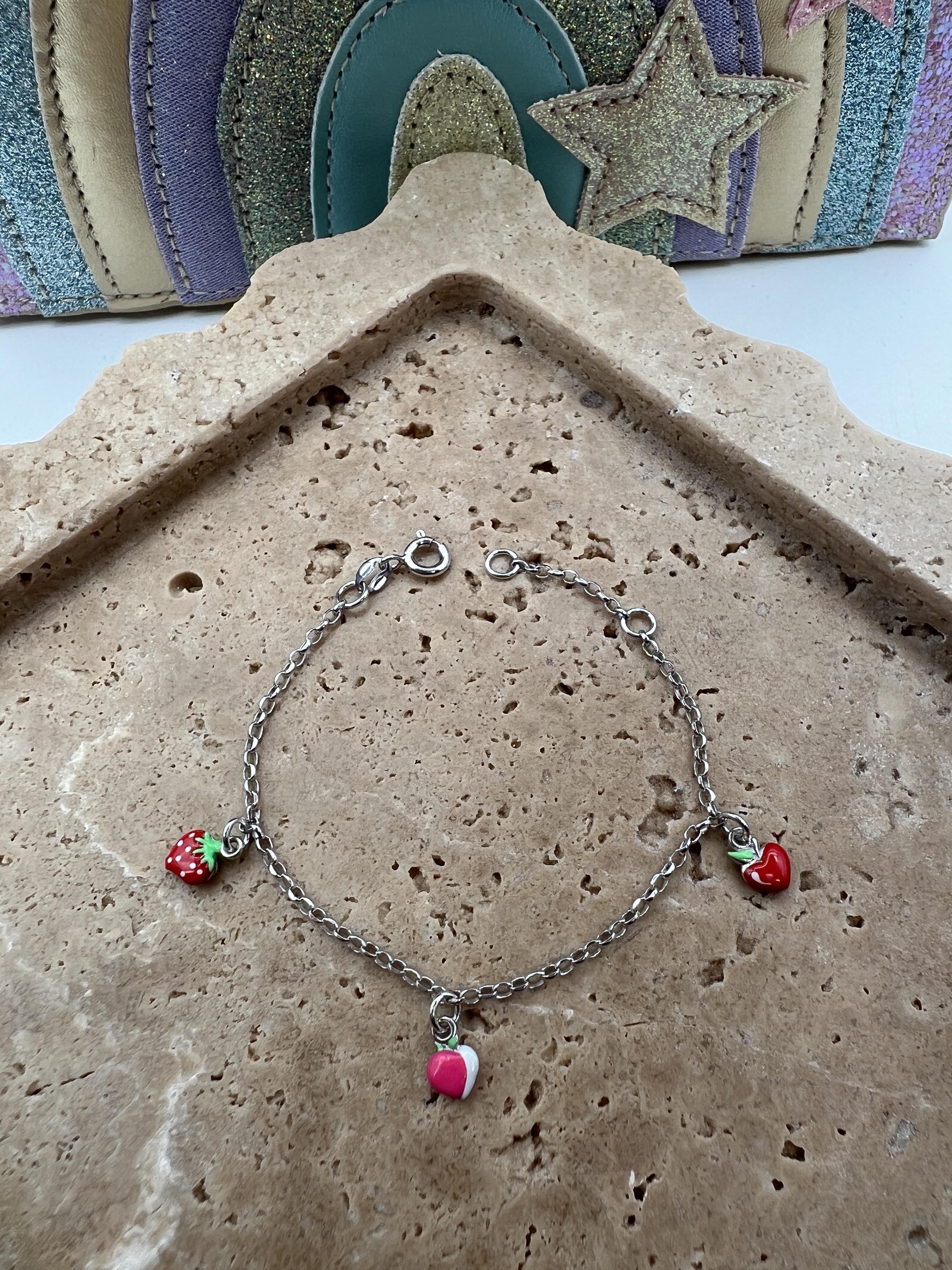 ÇOCUK GÜMÜŞ MİNELİ ÇİLEK BİLEKLİK