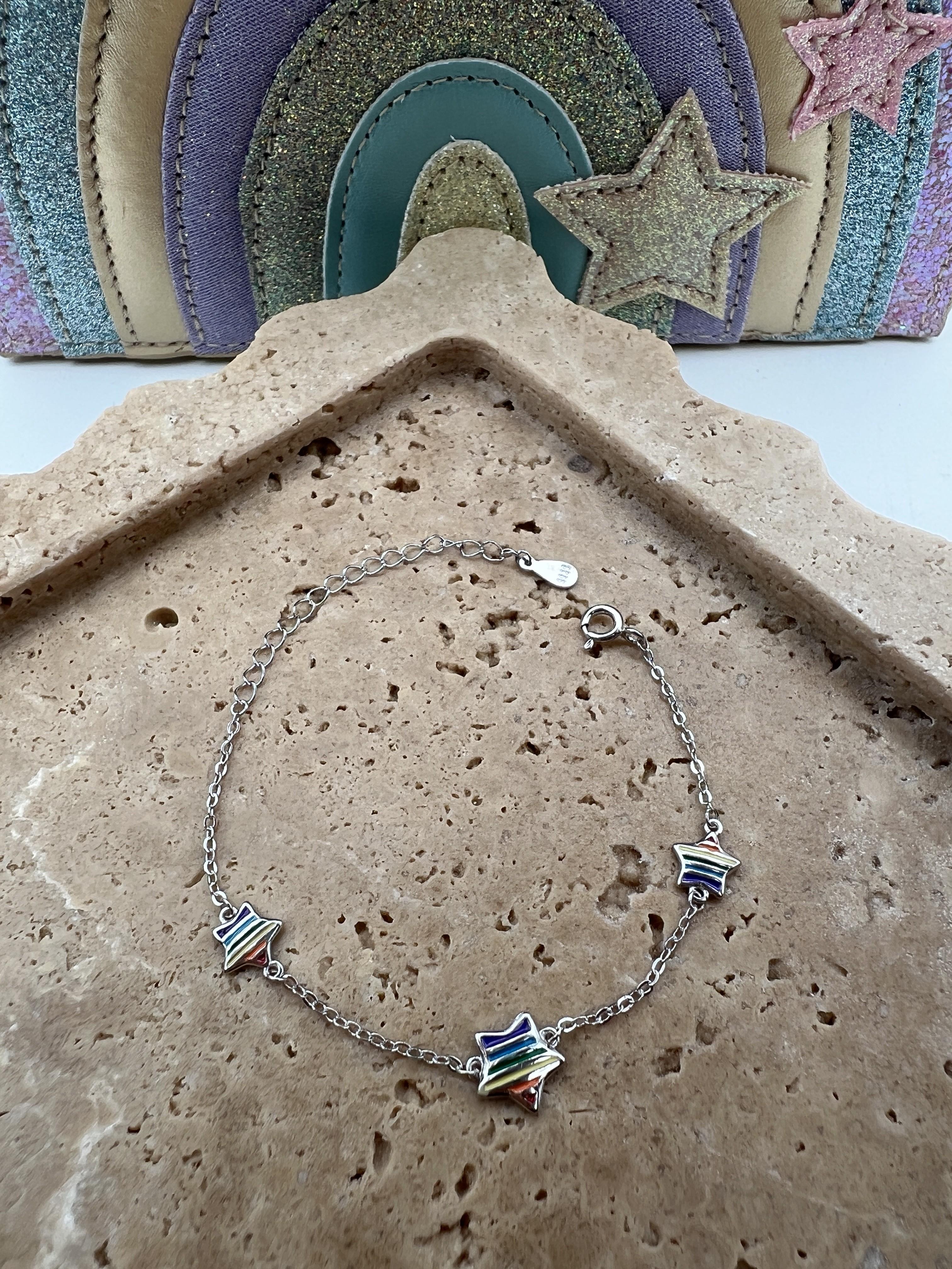 ÇOCUK GÜMÜŞ MİNELİ RENKLİ YILDIZ BİLEKLİK