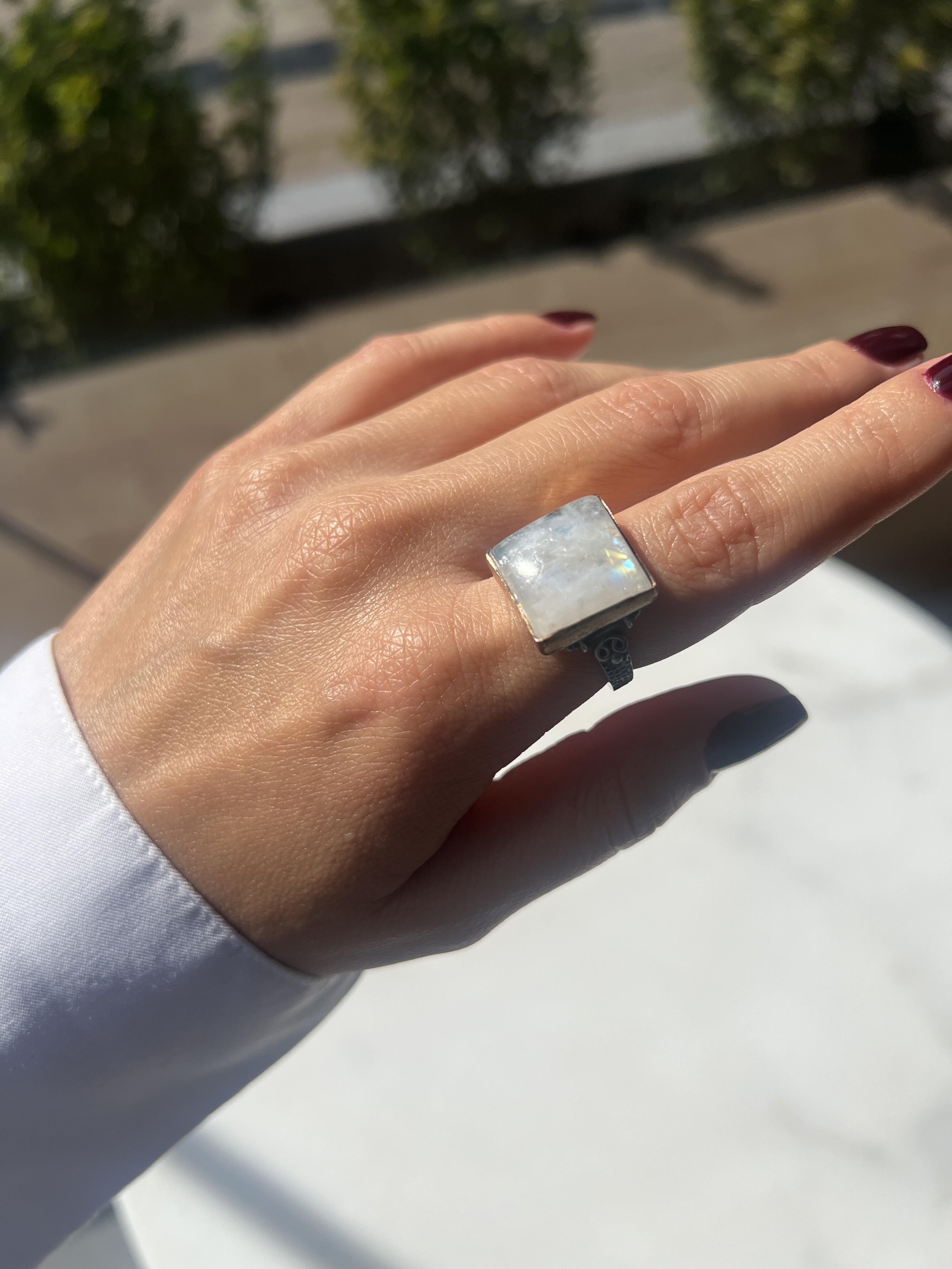-925 ayar gümüş doğal taş el işi tasarım yüzük