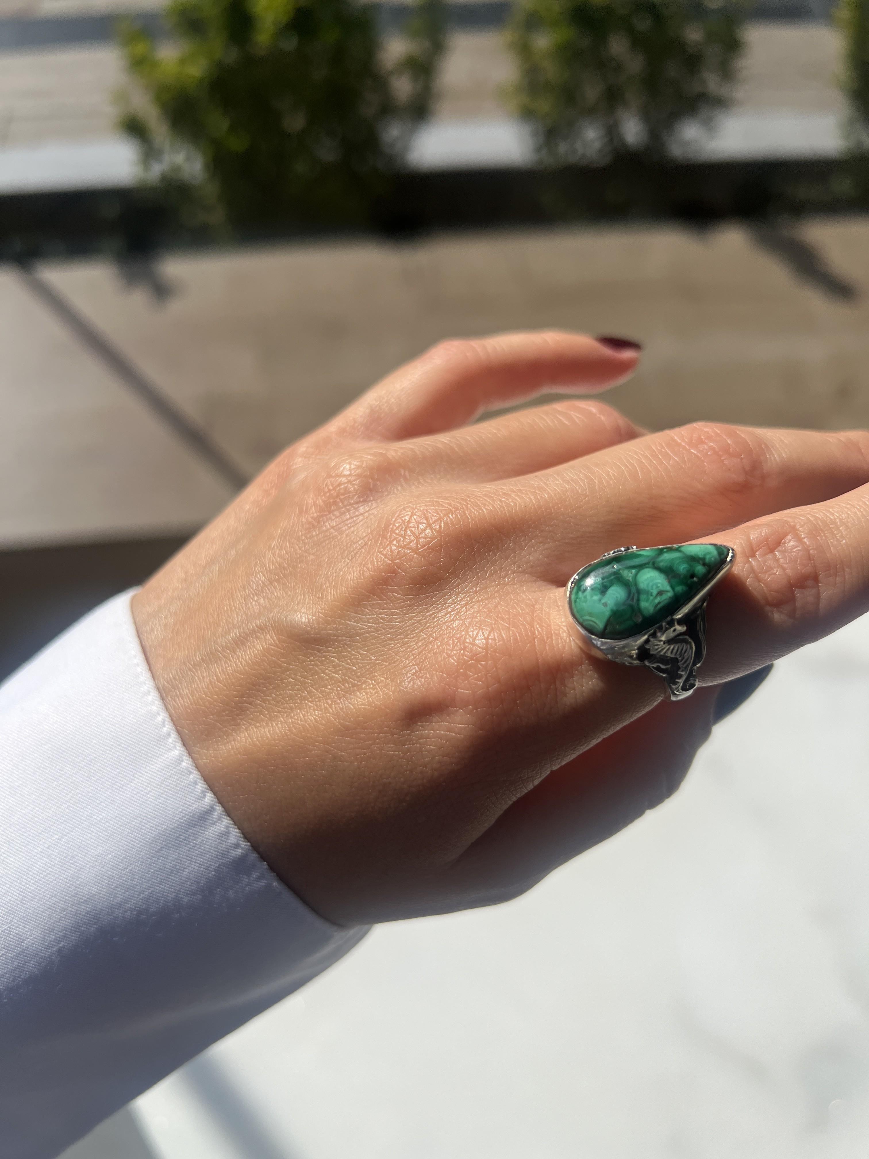 EL İŞİ TASARIM DENİZATI MALAHİT TAŞLI YÜZÜK