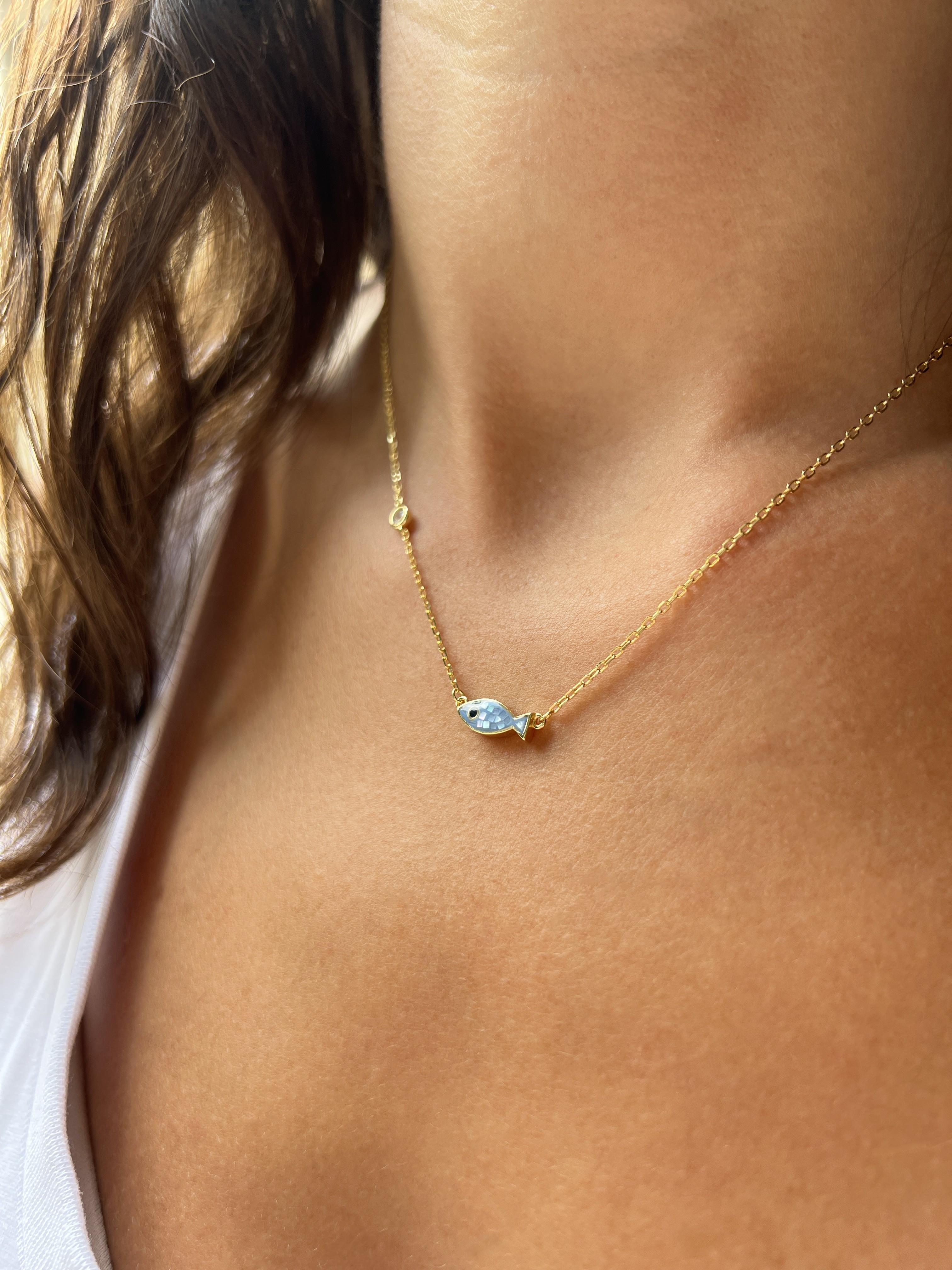 GÜMÜŞ MOZAİK MAVİ BALIK KOLYE