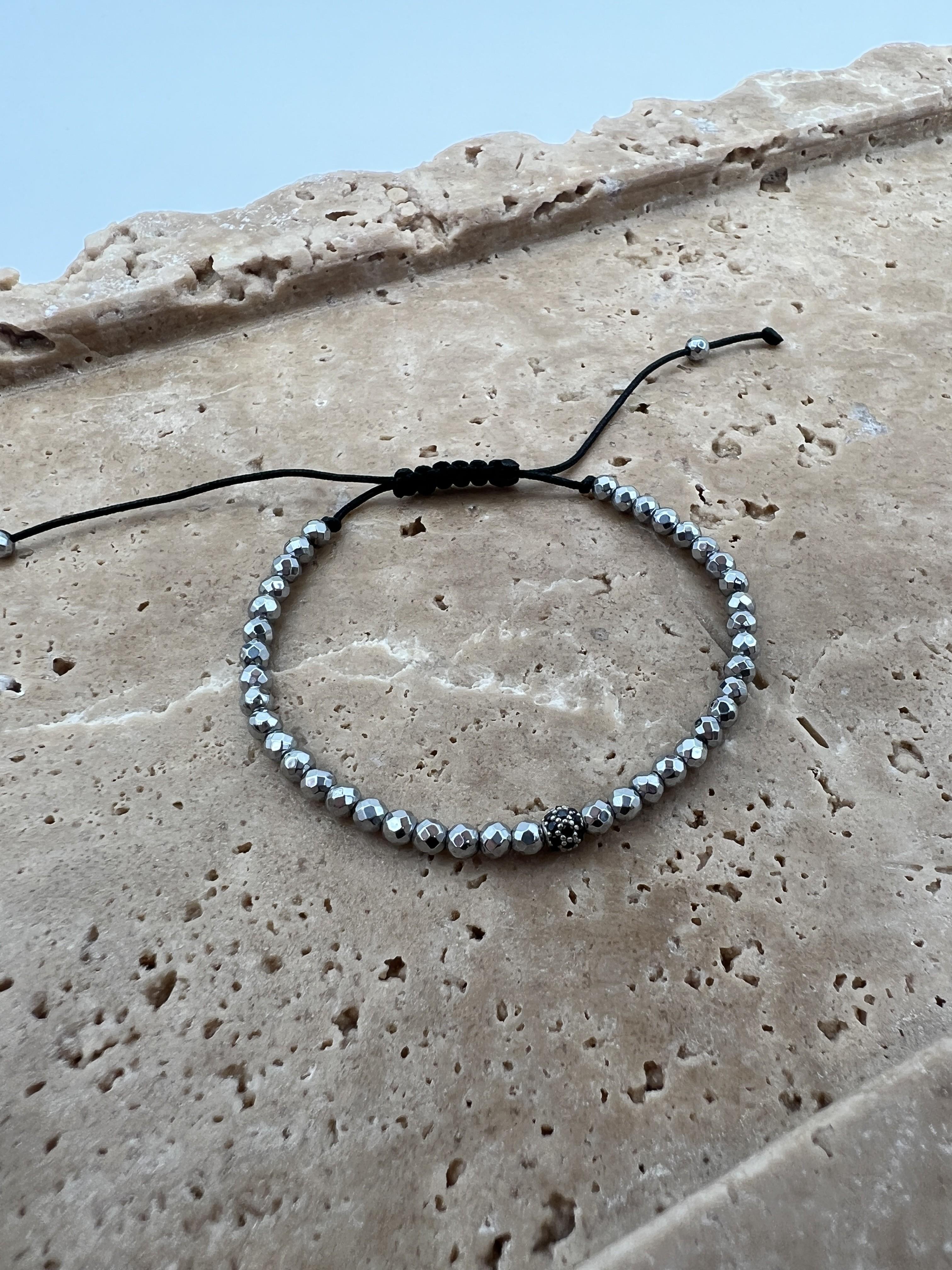 HEMATİT TAŞLI GÜMÜŞ TOP DETAYLI BİLEKLİK