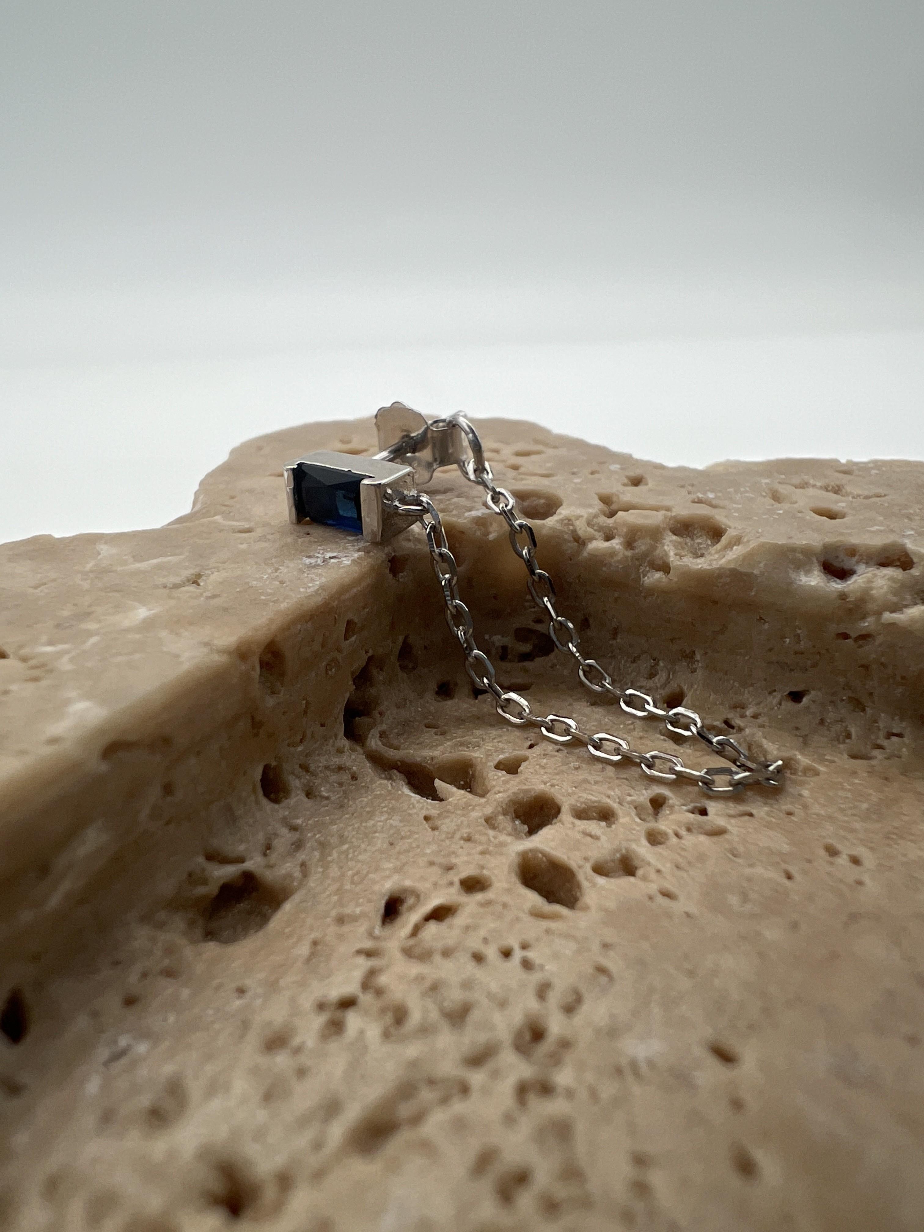 LACİVERT TAŞLI GÜMÜŞ ZİNCİR KÜPE