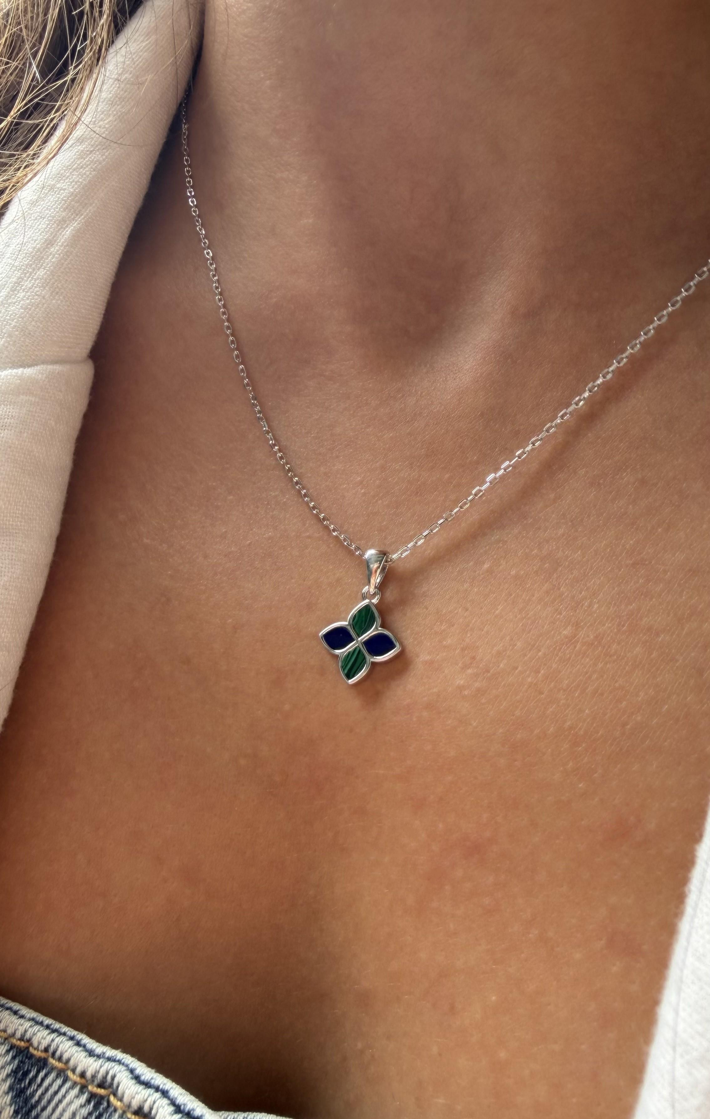 MALAHİT TAŞLI GÜMÜŞ YONCA KOLYE