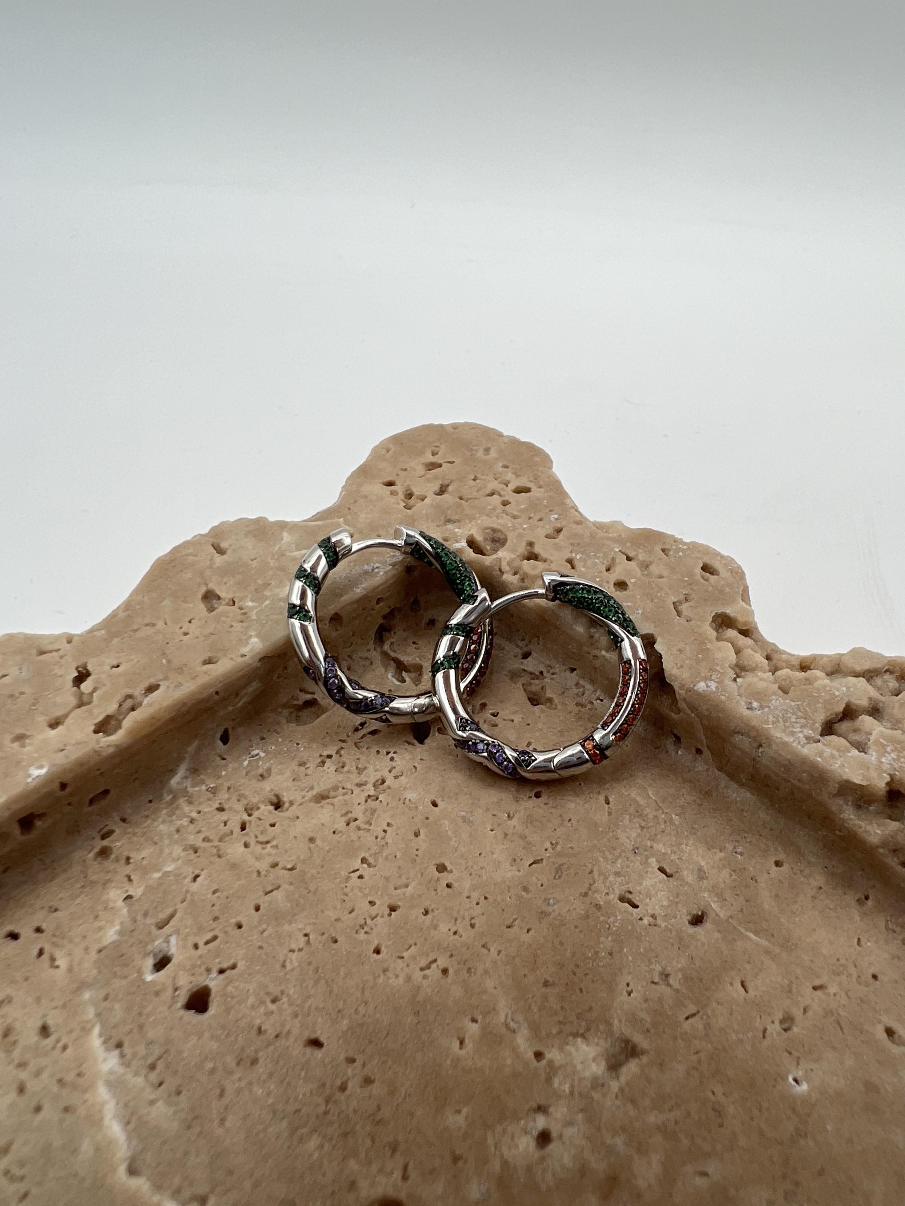 RENKLİ TAŞLI GÜMÜŞ HALKA KÜPE