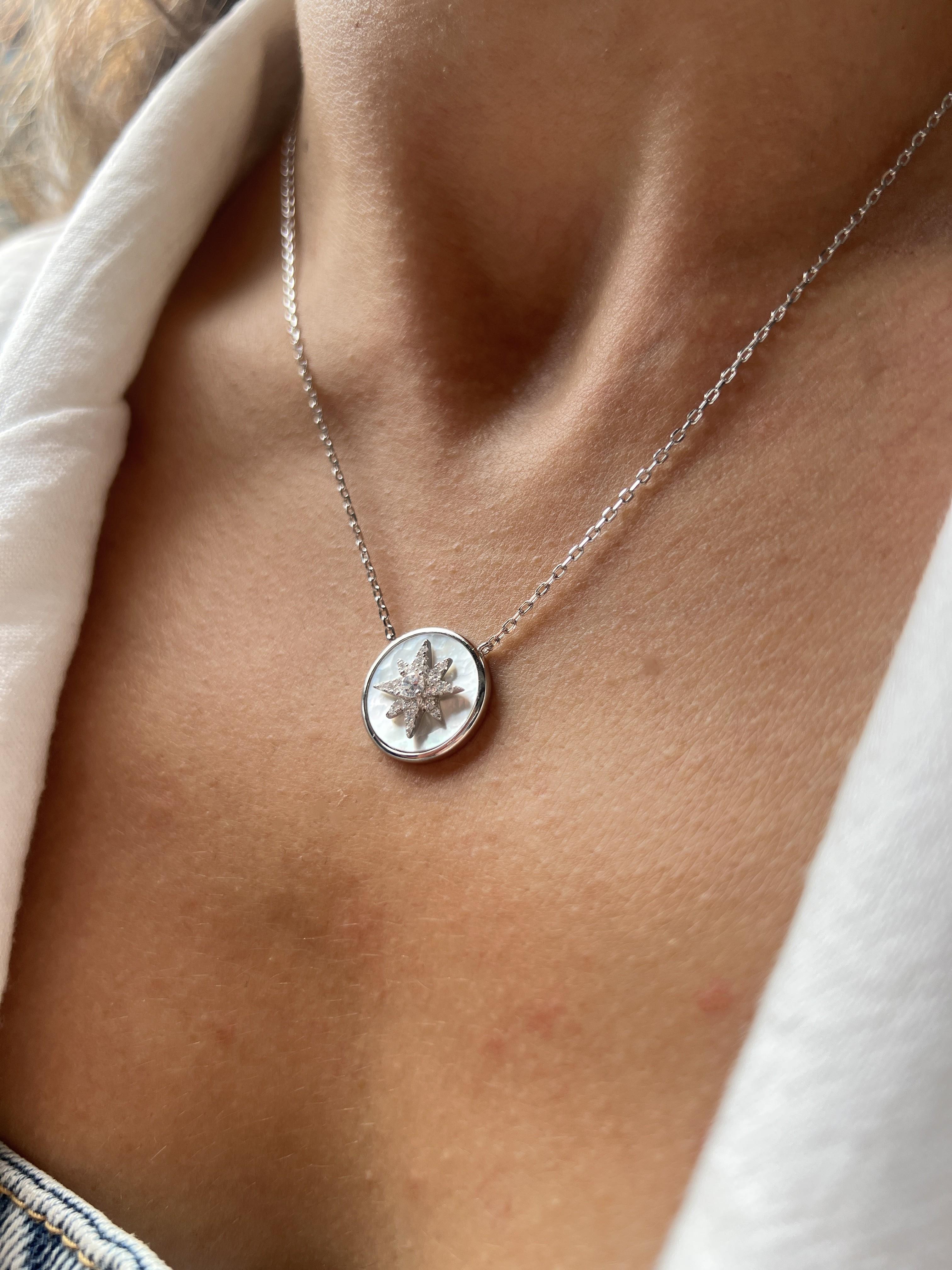 SEDEFLİ GÜMÜŞ KUZEY YILDIZI KOLYE