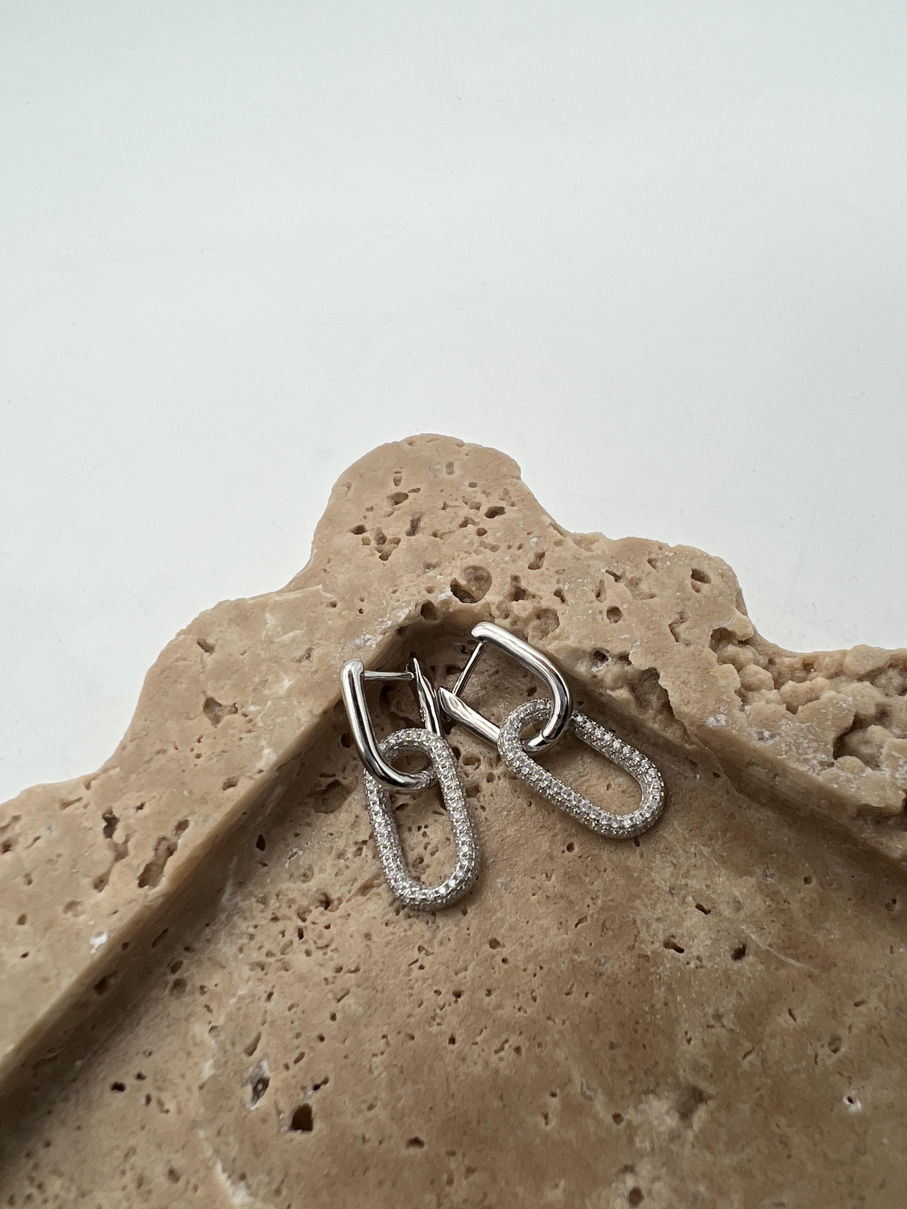 TAŞLI SALLANTILI GÜMÜŞ DİKDÖRTGEN KÜPE